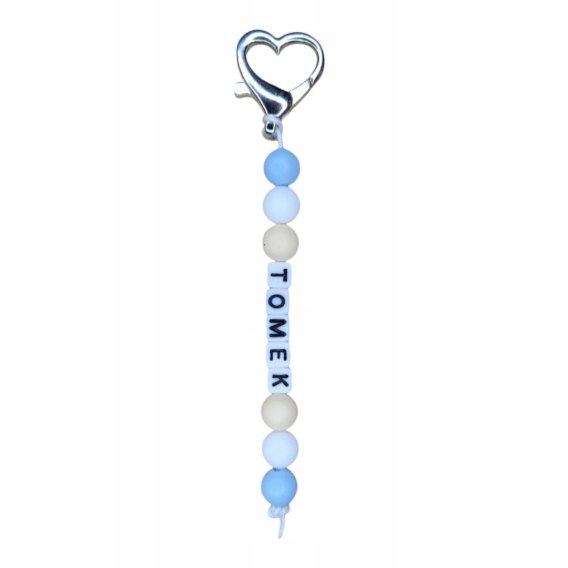 BRELOK Z KORALIKÓW SILIKONOWYCH Z IMIENIEM PROSTY MAŁY Z ZAPIĘCIEM SERCE 5