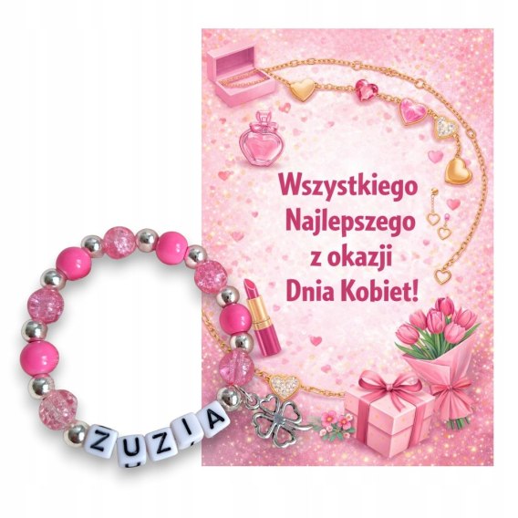 Bransoletka dla Dziewczynki z Imieniem + Kartka Prezentowa DZIEŃ KOBIET