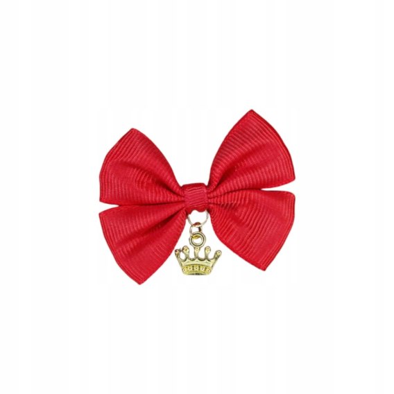 • Broszka do wózka CZERWONA KOKARDKA KORONA ZŁOTA na szczęście