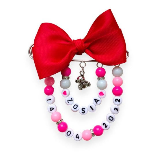Broszka do wózka agrafka z imieniem i datą urodzenia RÓŻOWA