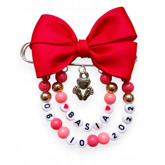 • Broszka do wózka agrafka z imieniem i datą urodzenia dziecka