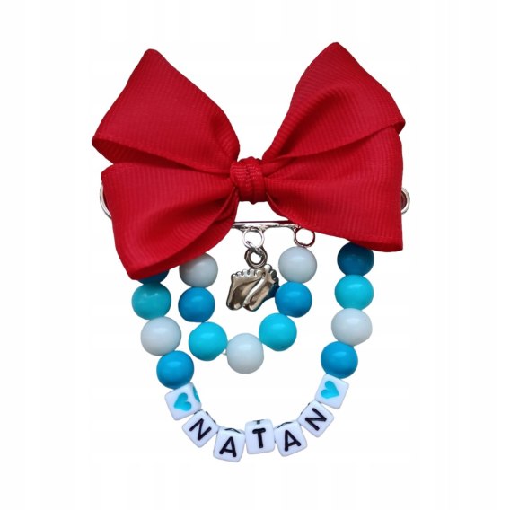• Broszka do wózka agrafka z imieniem kokarda czerwona