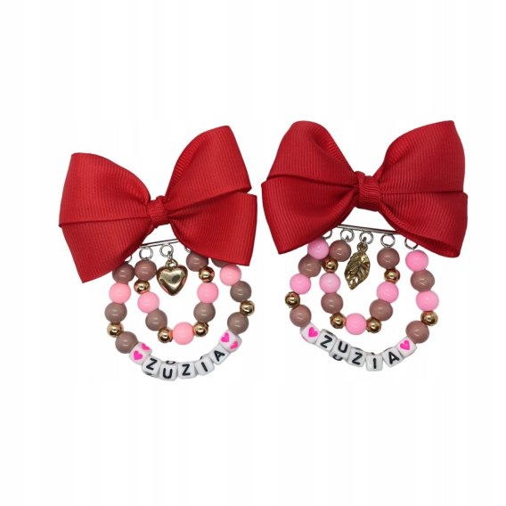 Broszka do wózka agrafka z imieniem kokarda czerwona
