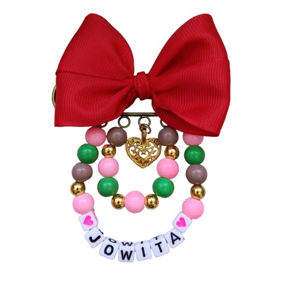 • Broszka do wózka agrafka z imieniem kokarda czerwona