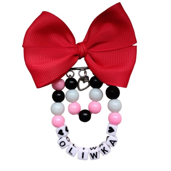 • Broszka do wózka agrafka z imieniem kokarda czerwona