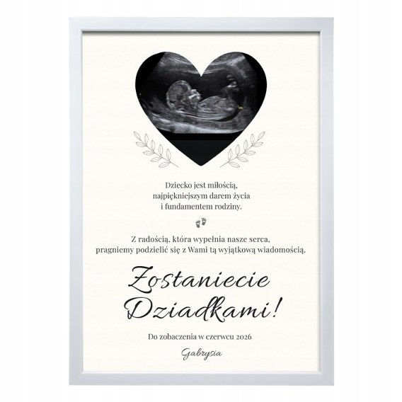 INFORMACJA O CIĄŻY PLAKAT Z RAMKĄ A4 dla DZIADKÓW ZDJĘCIE USG PAMIĄTKA