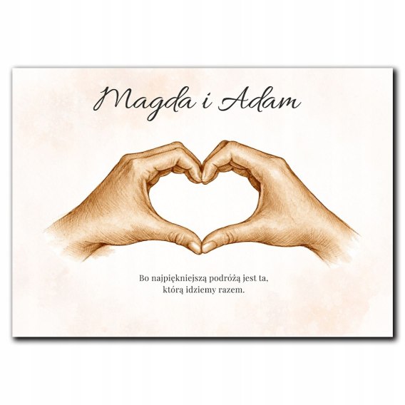 PLAKAT DŁONIE Z SERCEM DLA PARY DO DOMU ROCZNICA ŚLUB ZARĘCZYNY WALENTYNKI