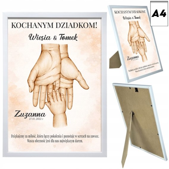 PLAKAT PAMIĄTKA PREZENT DZIEŃ BABCI DZIADKA Z IMIENIEM WNUKA A4 RAMKA