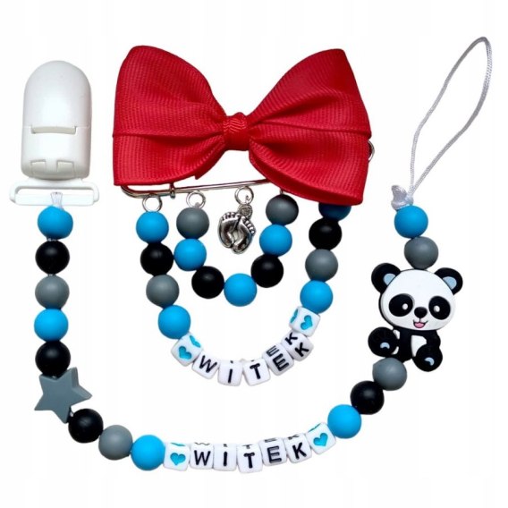 ZESTAW Zawieszka do smoczka + wózka CHŁOPIEC IMIĘ NARODZINY
