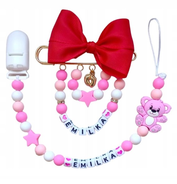 ZESTAW Zawieszka do smoczka + wózka IMIĘ PREZENT MIŚ