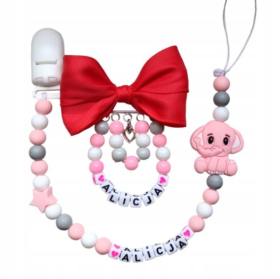 - ❤️ Zawieszki do wózka imiennej z czerwoną kokardką
