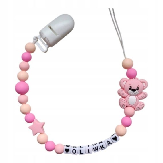 Zawieszka silikonowa do smoczka dla dziewczynki z misiem 4